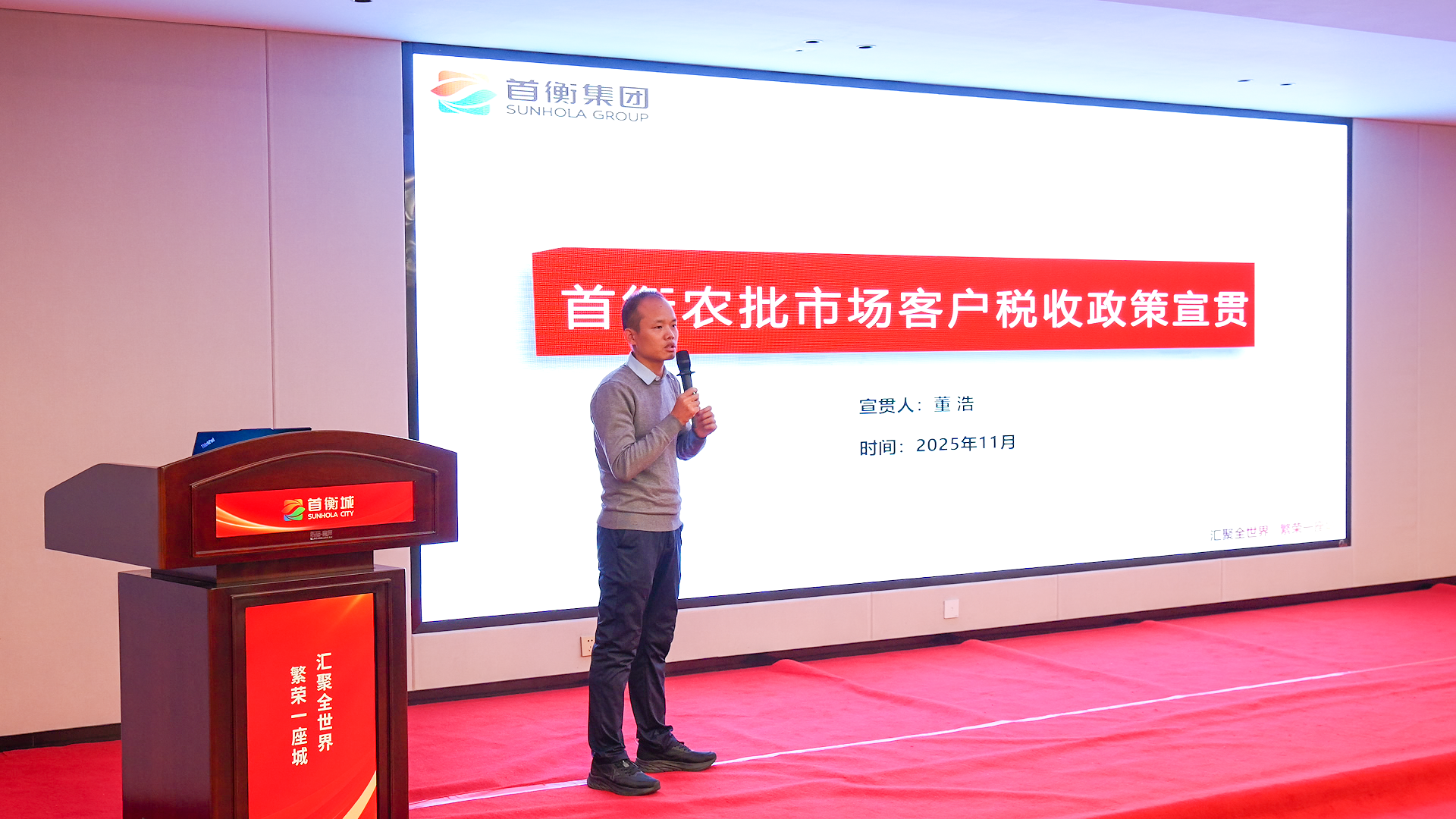 為深入落實湖北省孝感市委書記胡玖明考察首衡集團時的工作要求,推動市場從“規模擴張”向“質效提升”轉變,首衡城項目公司迅速響應,聯動管委會,將稅收政策宣貫作為落實政企共識的首要舉措,于11月5日,特邀首衡集團財務管理中心稅務負責人董浩,面向120名商戶代表及首衡城管理團隊開展稅收政策宣貫培訓,以“稅務合規大禮包”精準破解商戶關于農產品納統的顧慮,筑牢政企協同發展根基。