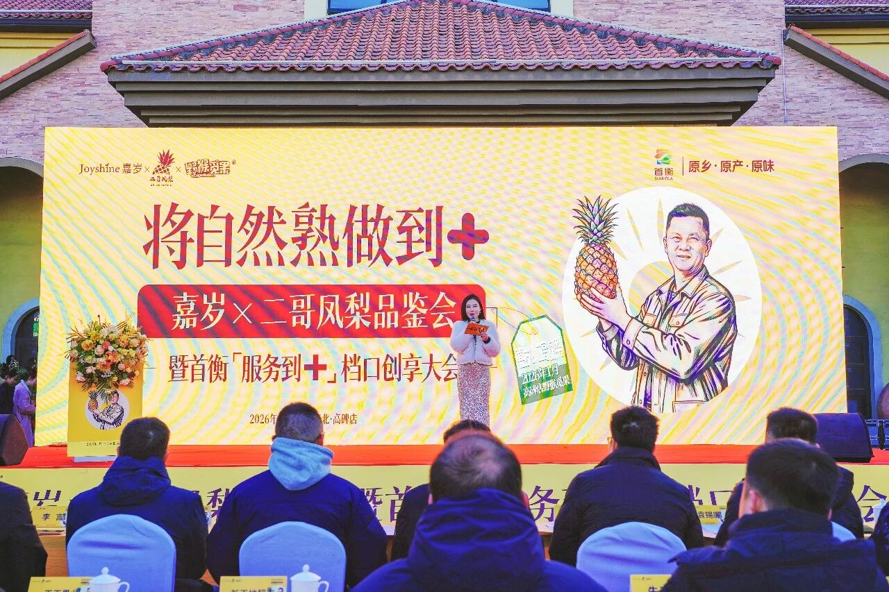 1月10日,嘉歲x二哥鳳梨品鑒會(huì)暨首衡“服務(wù)到+”檔口創(chuàng)享大會(huì)在首衡高碑店國(guó)際農(nóng)產(chǎn)品交易中心隆重舉行。本次活動(dòng)不僅是首衡集團(tuán)“原鄉(xiāng)·原產(chǎn)·原味”品質(zhì)IP戰(zhàn)略的又一力作,更是首衡集團(tuán)從“園區(qū)管理者”向“產(chǎn)業(yè)生態(tài)運(yùn)營(yíng)者”戰(zhàn)略轉(zhuǎn)型的重要實(shí)踐,標(biāo)志著中國(guó)生鮮流通領(lǐng)域邁入“拼品質(zhì)、拼體驗(yàn)、拼生態(tài)”的全新發(fā)展階段。