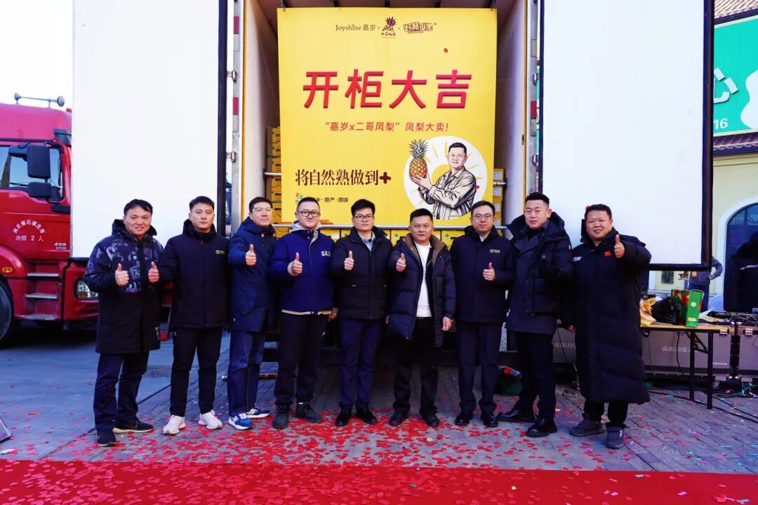 開柜儀式上,與會(huì)領(lǐng)導(dǎo)共同上臺(tái)剪彩,隨著滿載嘉歲x二哥鳳梨的貨柜緩緩開啟,這批凝聚著政府、市場(chǎng)、企業(yè)、農(nóng)戶四方心血的“自然熟到+”鳳梨,將從首衡高碑店市場(chǎng)出發(fā)送往千家萬戶,讓熱帶風(fēng)味香飄大江南北。