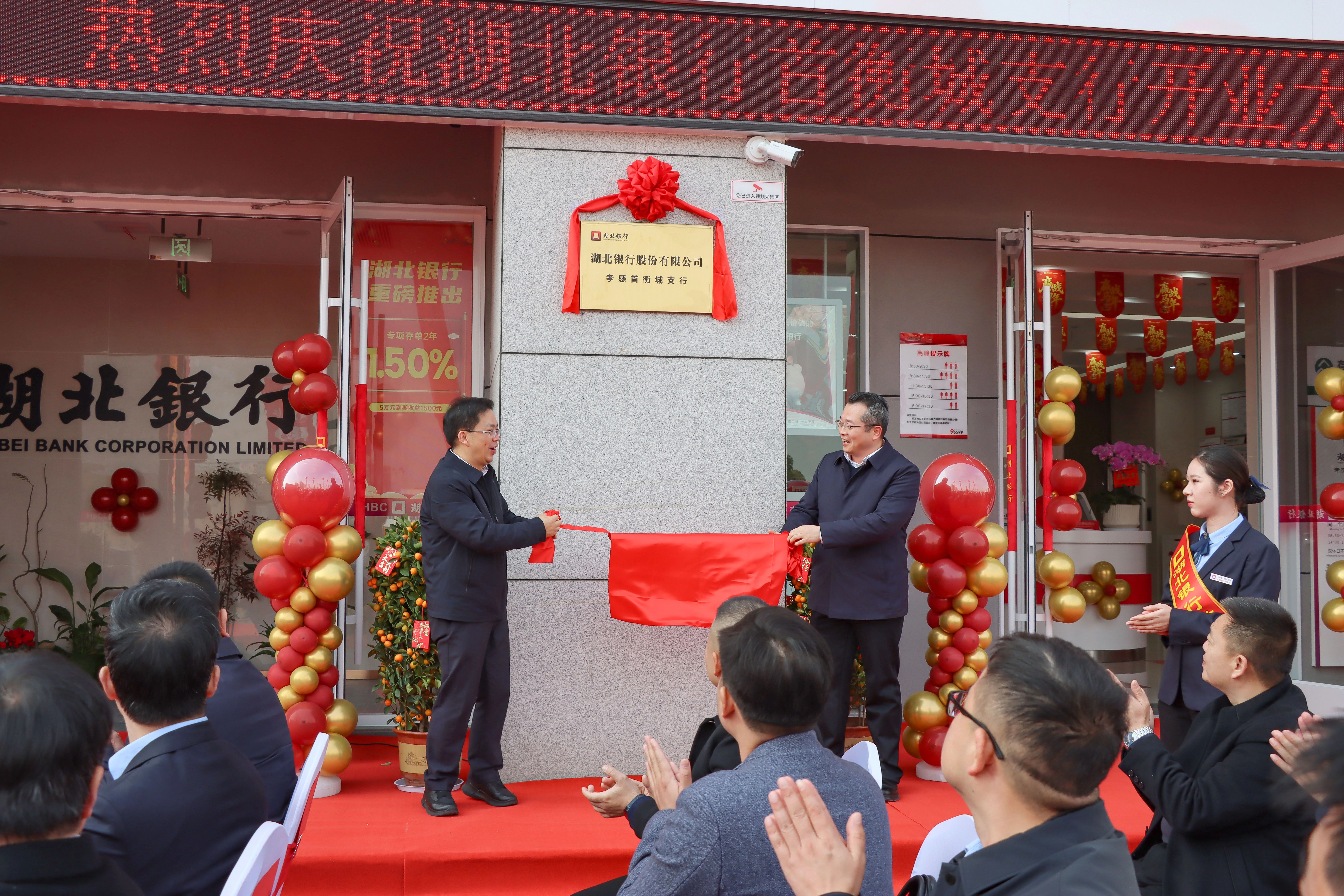 在熱烈的掌聲中,陳情與劉本偉共同為“湖北銀行孝感首衡城支行”揭牌,標志著湖北銀行首衡城支行正式投入運營。