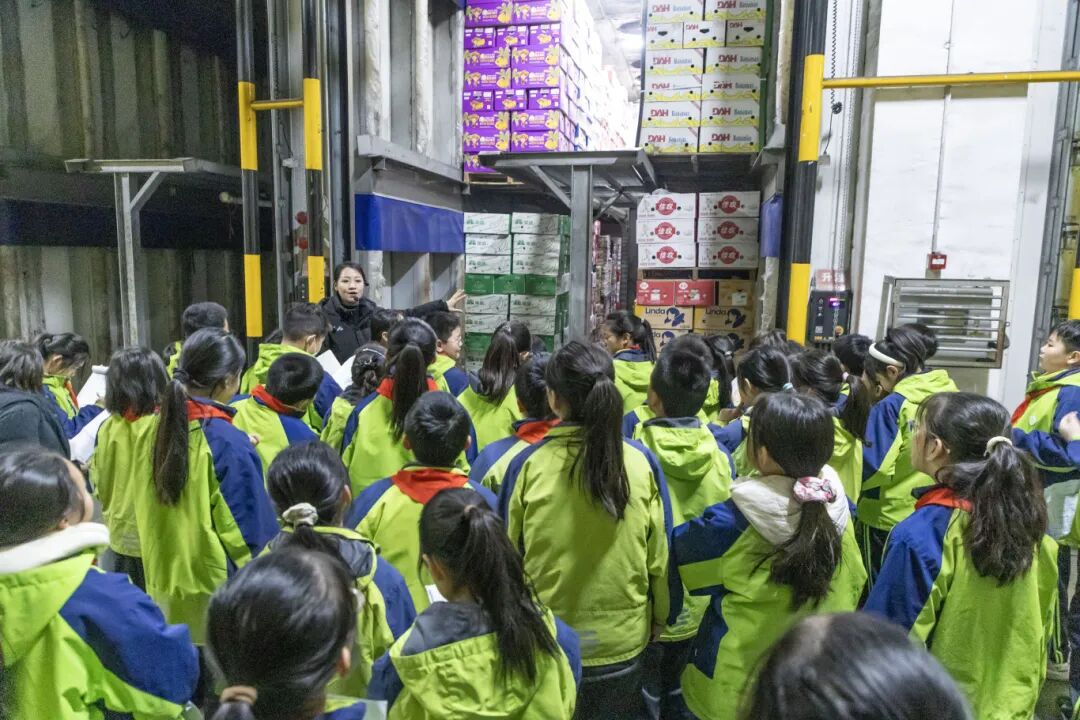 學生們依次探訪了首衡集團展示中心、高碑店國際農產品交易中心、智慧冷鏈物流園、特大城市應急物資中轉站等核心區域。在展示中心,通過圖文資料、沙盤模型和宣傳短片,孩子們系統了解了首衡的發展歷程、企業文化與全國布局,對這家“家門口的全國性批發市場”建立起立體而宏觀的認知;在進口水果交易區,小寶哥檔口琳瑯滿目的進口水果讓孩子們目不暇接,孩子們在趣味試吃中直觀感受“全球好果進萬家”的商業邏輯;在香蕉氣調庫,工作人員用通俗的語言講解了香蕉在氣調環境下緩慢成熟的原理;在智慧冷鏈物流園,孩子們見識到了大閘蟹、海參、鰲蝦等眾多進口海產品;在應急中轉站的“悠惠果麗多”農產品展區,孩子們對有機蔬菜的種植標準和生產過程有了清晰的認知。