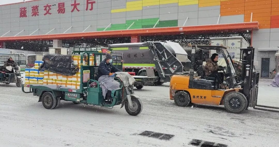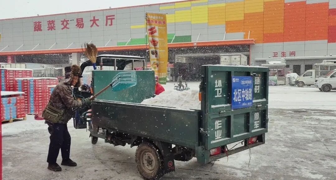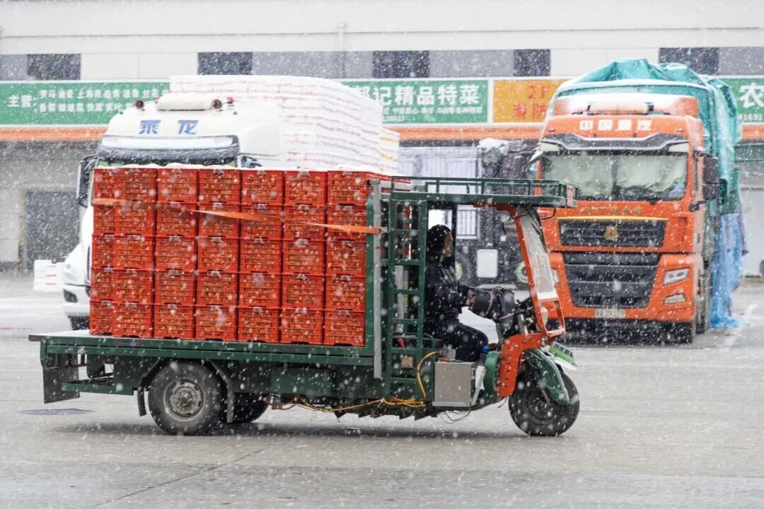 物流保障確保暢通與高效。集團與氣象、交通部門保持緊密聯動,提前規劃應急路線,為保供車輛協調通行便利。場內應急措施迅速到位,清雪除冰、鋪設防滑墊、設置保供專用通道等一系列動作,保障了內部流轉效率。倉儲環節,冷鏈設施啟動恒溫監控,并對在途及露天存放商品實施加蓋防寒氈、棉被等多層物理防護,有效防止農產品凍損。針對北京、天津等核心城市及重點單位,“點對點”直供機制確保優先調配、精準送達。