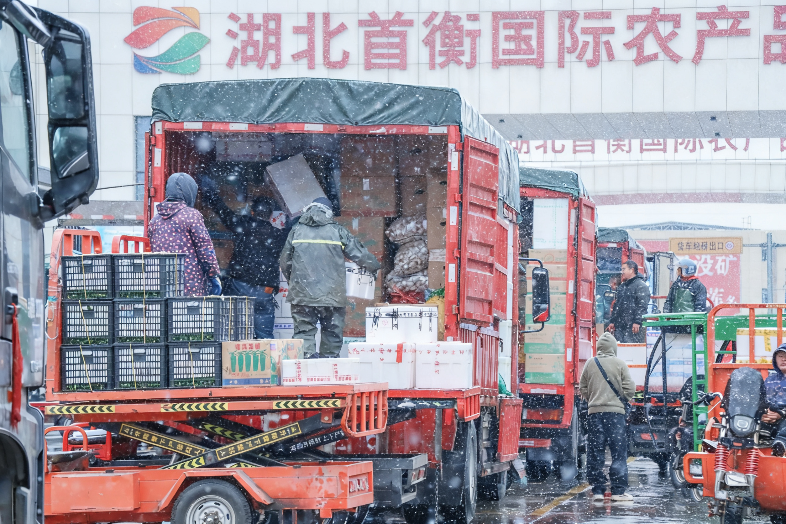 18日晚,強冷空氣席卷華中地區(qū),孝感氣溫驟降、寒意陡增,給農(nóng)產(chǎn)品生產(chǎn)流通、倉儲運輸帶來多重考驗。19日晚,當(dāng)?shù)赜瓉斫笛┨鞖猓e雪進(jìn)一步加劇低溫影響,首衡城緊扣天氣變化節(jié)奏,提前啟動寒潮應(yīng)急保供預(yù)案,備足8萬噸農(nóng)產(chǎn)品筑牢供給根基,從貨源組織、智慧管控、物流保障三大維度精準(zhǔn)發(fā)力,全力守護(hù)鄂湘豫皖等區(qū)域6億群眾“菜籃子”“果盤子”,確保物資貨豐價穩(wěn)、供應(yīng)無憂。